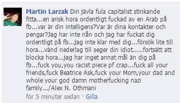 Inlägget ovan har jag plockat från Cecilia Klokegårds blogg där du kan läsa mer om alla de hemskheter som hon och även hennes familj har fått stå ut med i snart ett år.